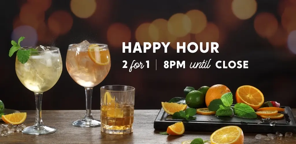 Join us at selected pubs on these dates for our Happy Hour offer! Embrace the weekend vibes with our exclusive two-for-one offer on selected cocktails and lagers*, available from 8:00pm until closing.